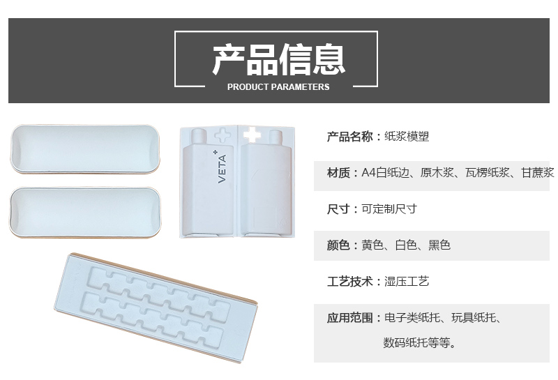 产品名称:白酒湿压纸托 材质:A4白纸边、原木浆、瓦楞纸浆、甘蔗浆 尺寸:可定制尺寸 颜色:黄色、白色、黑色 工艺技术:湿压工艺 应用范围:电子类纸托、玩具纸托、数码纸托等等